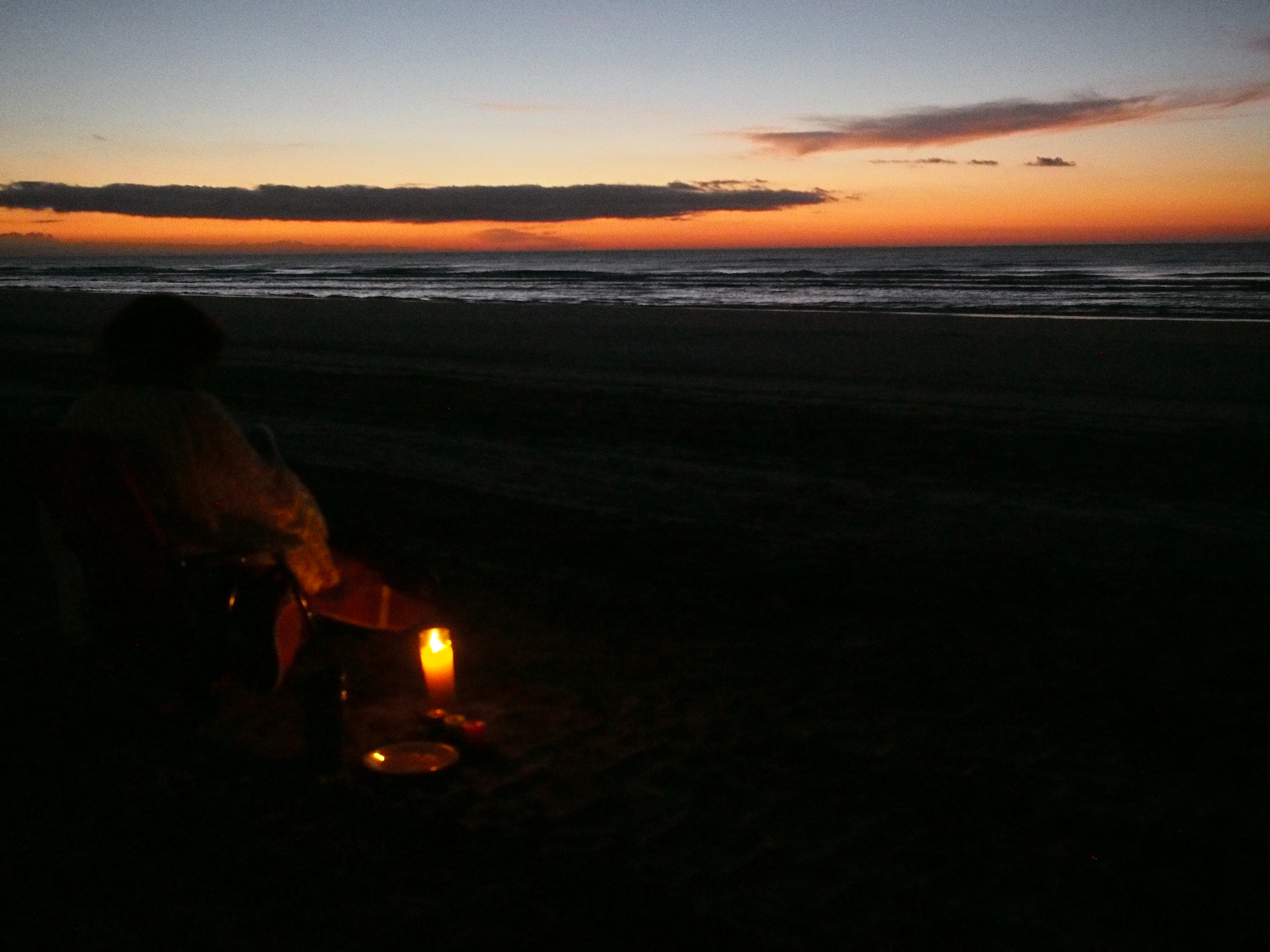 It’s two hours before dawn when I hobble up the sand, using one crutch. It hurts a lot, but I don’t say anything. My injured leg doesn’t like the shifting uneven ground or the beach plants that try to grab at my support. I’m afraid of falling. I’m tired, we have been up all night. My boyfriend drove me 6 hours away from home so I could watch the sunrise on the winter solstice. I feel grateful and oddly melancholy. We reach the beach to find it totally deserted, the only sound is the waves. There are lights in the distance, lights from the hotel behind us, but not so many that I can’t see the stars. It’s not as cold as you would think, but cold enough. I sit in a camp chair, wrapped in a flannel blanket and wait for the new sun to be born. I feel like I’m at the edge of the world. I feel hopeful, maybe the worst year of my life is going to end this night. Maybe the sun will dawn on a new world, where I don’t hurt all the time, where I don’t feel trapped and afraid all the time. Maybe the darkest part of my life is over. And maybe not, at that moment it’s enough to listen to the song of the waves.